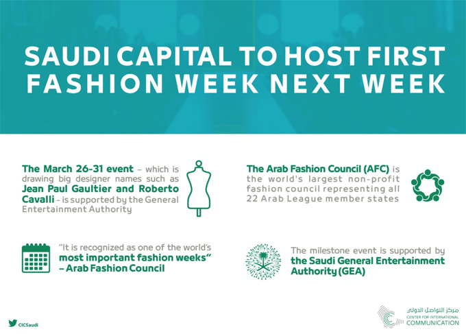 “The first Arab Fashion Week in Riyadh boasts an impressive line-up of international and regional designers, which includes legendary French designer Jean Paul Gaultier, Russian renowned designer Yulia Yanina, famous Lebanese fashion house, Bassil Soda,” AFC said.