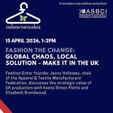 In a recent ASBCI webinar (15th April) introduced by Elizabeth Brandwood titled: “Global Chaos, Local Solution – Make it in the UK”, industry leaders Jenny Holloway and Simon Platts explored how the UK can play a critical role in building more resilient, profitable and responsible sourcing strategies. What emerged was not a call to abandon global sourcing but a clear argument for balance, smarter decision-making, and a renewed appreciation for local capability.