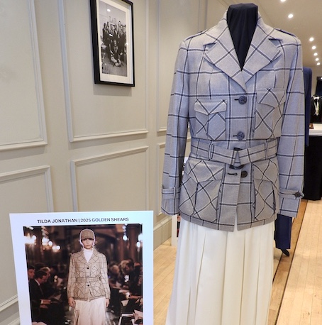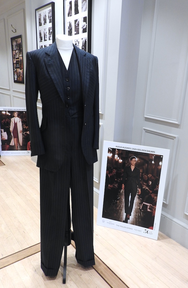 Walking along the Row, I was drawn into the window displays of legendary tailoring houses such as Huntsman, Henry Poole & Co, Dege & Skinner, Richard James, Knatchbull, and clothsurgeon – each offering a glimpse into past Golden Shears winning entries and their remarkable craftsmanship. The showcase not only honours past winners but also reaffirms the tailoring community’s deep commitment to nurturing new talent through apprenticeships and training.