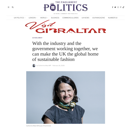 In her recent article for ParliamentNews.co.uk, published 16th February 2026, Catherine West sets out a clear and timely challenge: if government and industry work together, the UK can become the global home of sustainable, quality fashion.