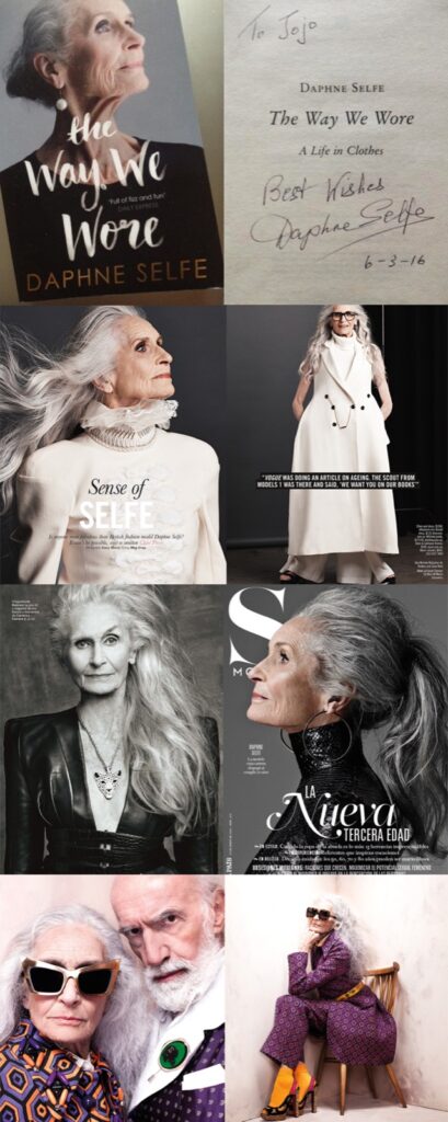 Naturally slim Daphne is keen to promote a healthy mind and body. “Be positive, curious and interested in the world, and most importantly be healthy,” is her personal mantra. Her weekly regimen includes home cooked meals, yoga, ballet and regular walks. “Why should we become invisible after 40,” she states. If anyone should be an ambassador for growing old gracefully then surely Daphne Selfe is the ideal candidate.