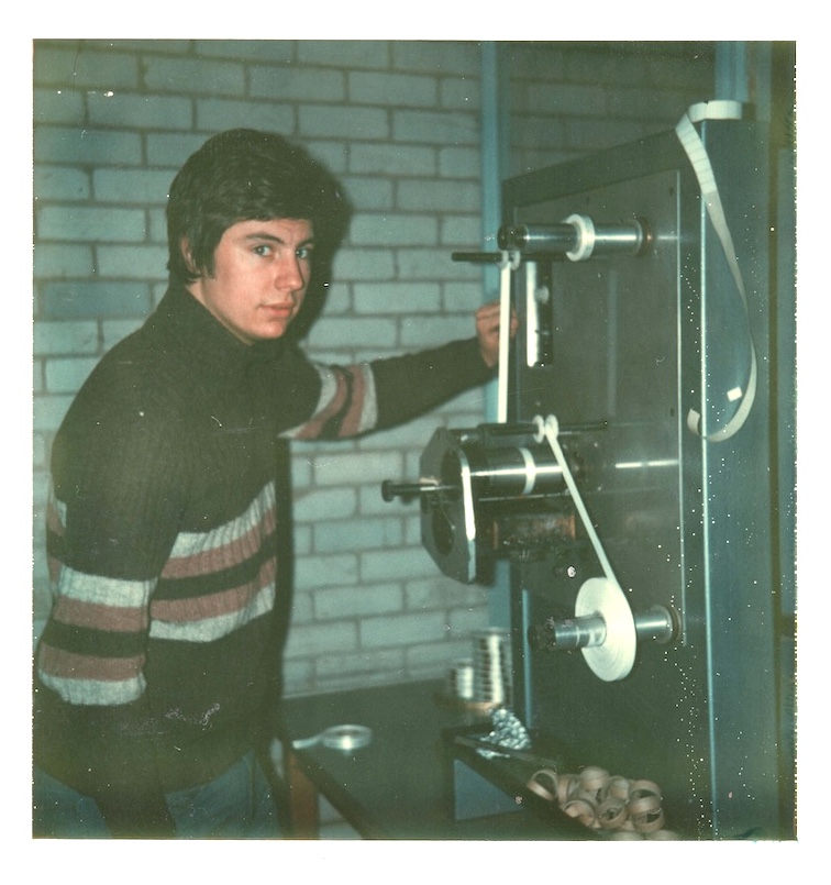 (Clive Harris and printing machine 1976)