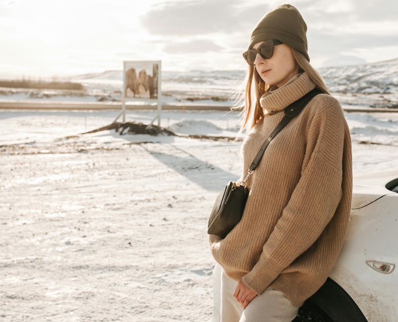 Knitted hats, insulated gloves, and scarves are essential accessories for Icelandic winter conditions. Choose colours and textures that complement your outfits, such as soft neutrals or muted tones, to create a cohesive, stylish look.