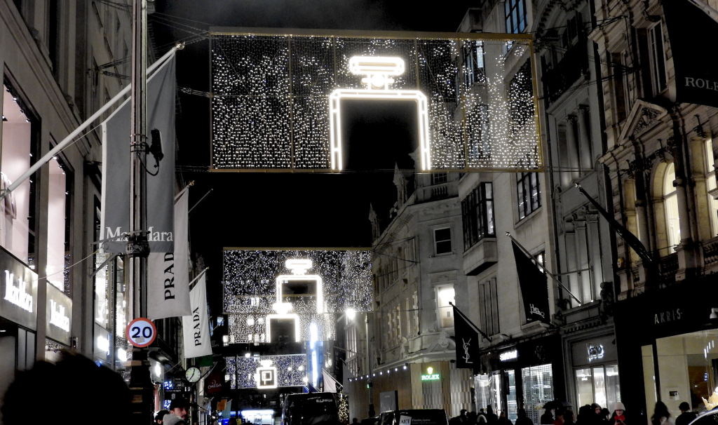 This year, a hotspot favourite is Bond Street. As London’s most luxurious shopping street that spans Oxford Street to Piccadilly the entire street is garlanded with lit up Chanel No5 bottles.