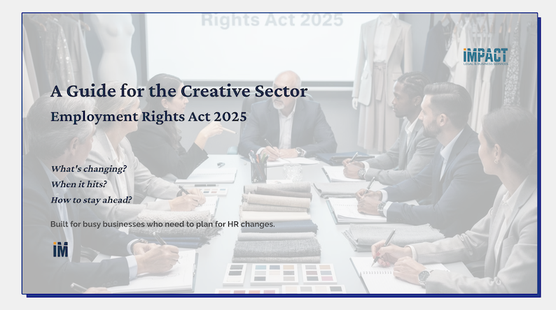 Navigating employment law changes can feel overwhelming – particularly for creative businesses balancing growth, clients and delivery. That’s why Impact Legal and Business Services has produced a practical guide to the Employment Rights Act 2025, tailored specifically to the creative sector. The guide provides a clear, at-a-glance timeline of upcoming reforms, explaining what’s changing, when changes take effect, and how businesses can prepare proactively rather than react under pressure. While some measures remain subject to further consultation, the guide highlights the updates most likely to affect growing creative enterprises and also briefly references Trade Union law developments. Creative leaders are encouraged to access the guide to stay informed and plan with confidence.