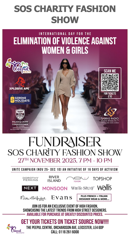 The FTA Fashion Hub Leicester will be present with a stand at the SOS Charity Fashion Show on Thursday 27th November 2025, 7–10 PM at the Peepul Centre, Leicester, an empowering event supporting the International Day for the Elimination of Violence Against Women & Girls.