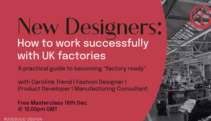 On 18th December, Fashion-Enter Ltd, delivered a free one-hour Zoom masterclass aimed at supporting emerging designers, start-ups and fashion students looking to work more effectively with UK manufacturers. Titled “New Designers: How to Work Successfully With UK Factories”, the session was led by industry specialist Caroline Trend and welcomed attendees from both the Fashion Technology Academy and the wider UK fashion community.