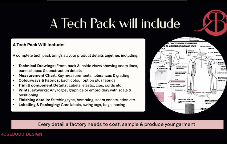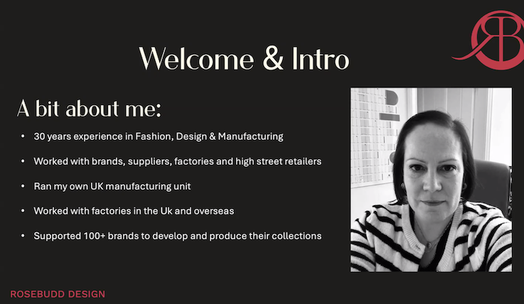 The session concluded with an engaging Q&A, where participants asked questions on topics such as tech pack software, sourcing the right manufacturers for specific products, and setting up a small-scale UK manufacturing studio. Caroline also invited attendees to book short one-to-one sessions for further advice.