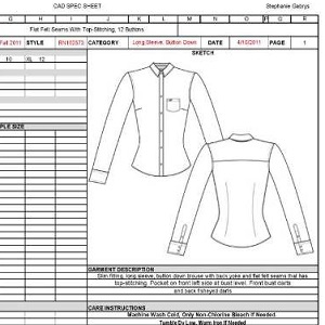 This is a costing sheet effectively but it provides you with the space to make notes too.  It itemises the Pattern No, Style/Line number, who the cutter was, the machinist, what trims and the total time taken to make the sample. initial sampling SpecThere is also a space for comments for potential production comments and issues. You need to have information and it’s so easy to forget any problems and issues that may arise over time.  If you keep accurate records from the beginning it will save you so much time in the future.  I would also add in a sketch or a photo of the garment too because who can remember a style line when you are making potentially 100s of samples a year.